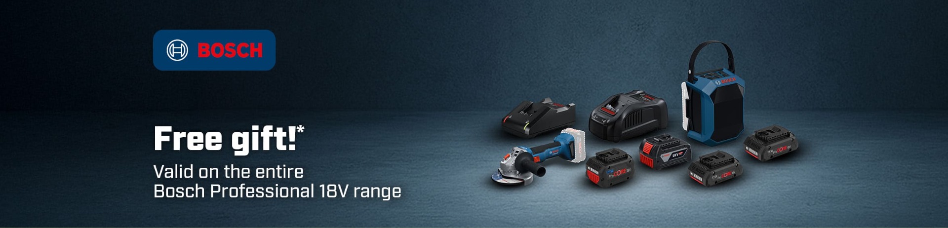 *Option A: Purchase Bosch Professional 18V (garden) tools, batteries and chargers and receive a free 18V 4.0Ah battery or battery speaker with a minimum spend of €199.00 (excl. VAT).