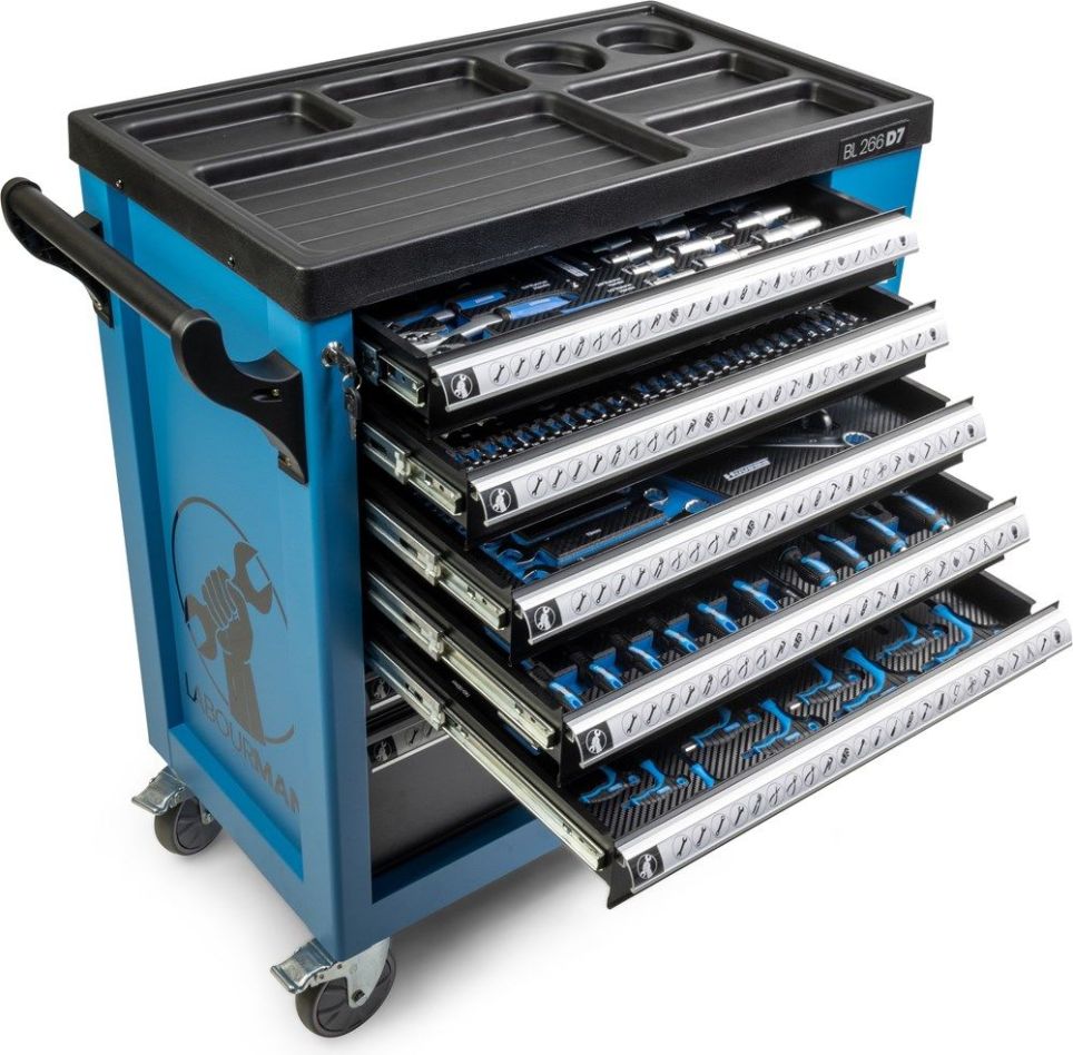- This tool trolley has 7 bearing drawers