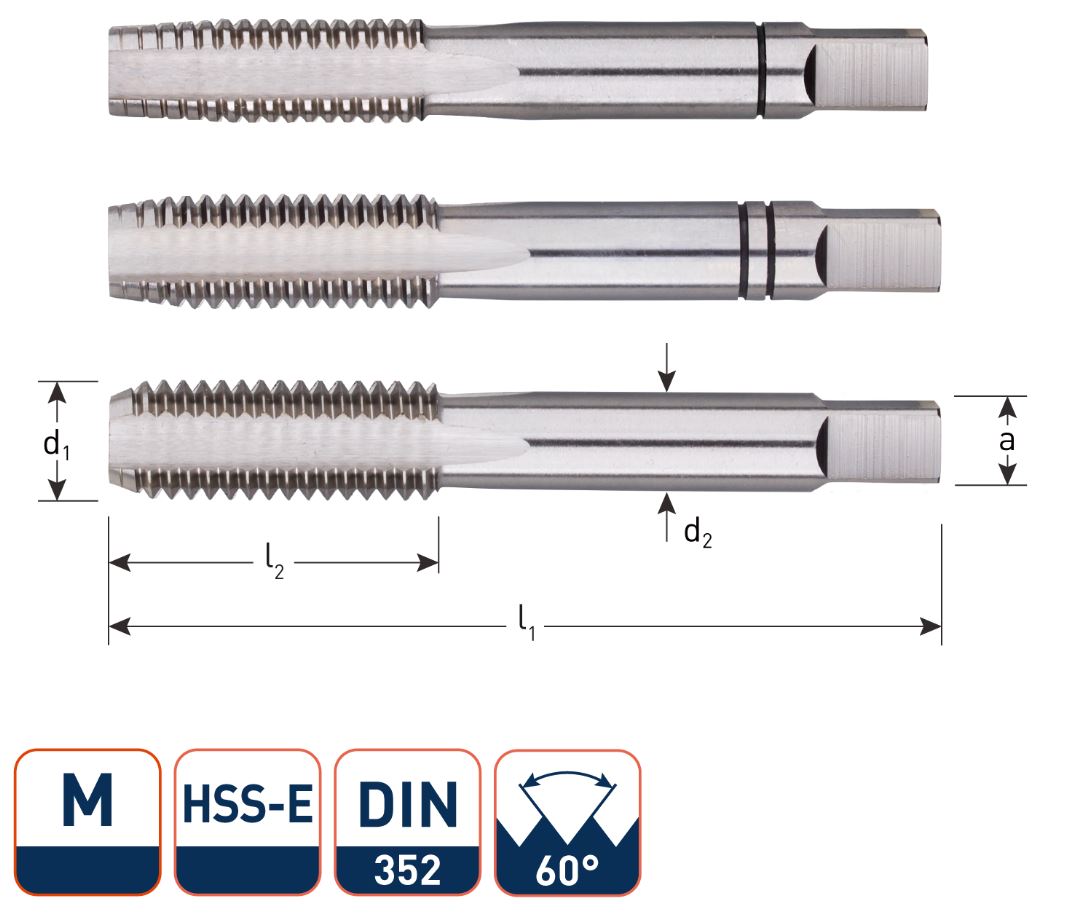 - HSS-E handtap DIN 352, metric, set of 3 pieces