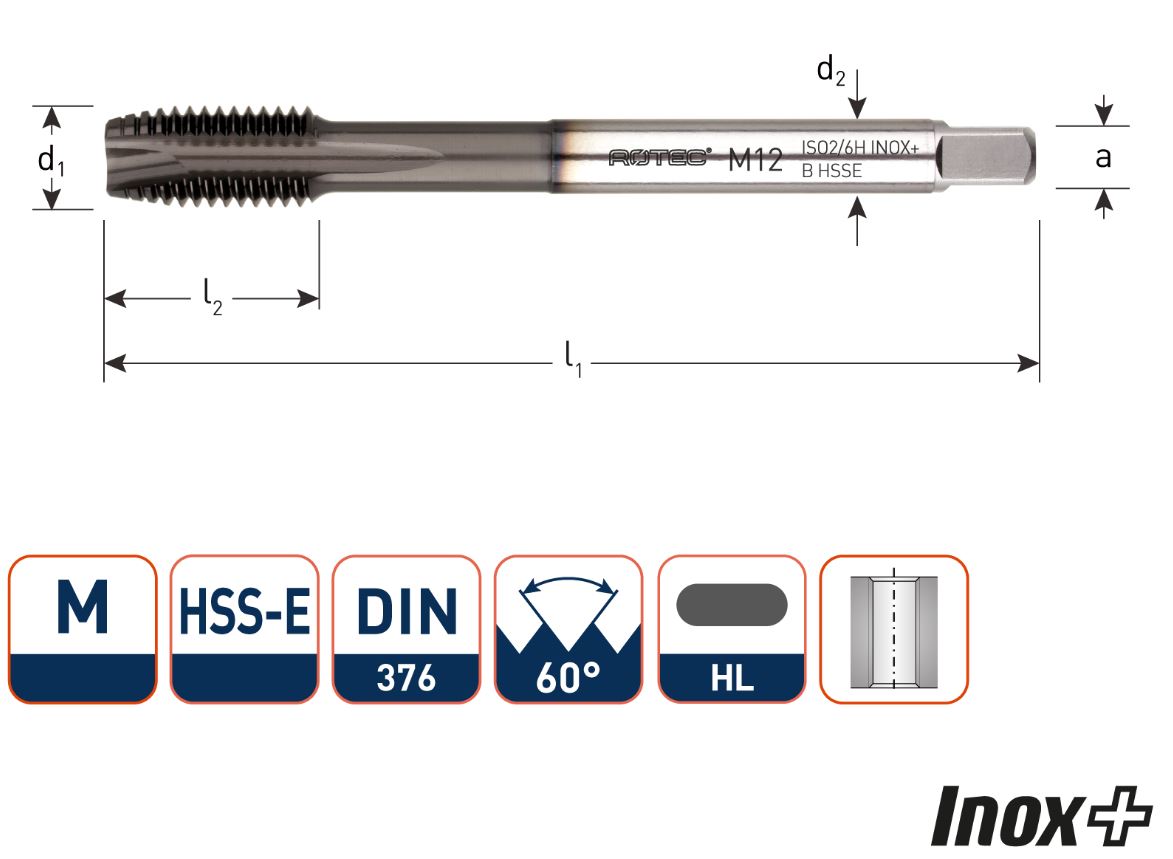 - Specifically developed for tapping through holes in austenitic stainless and acid resistant steels and duplex