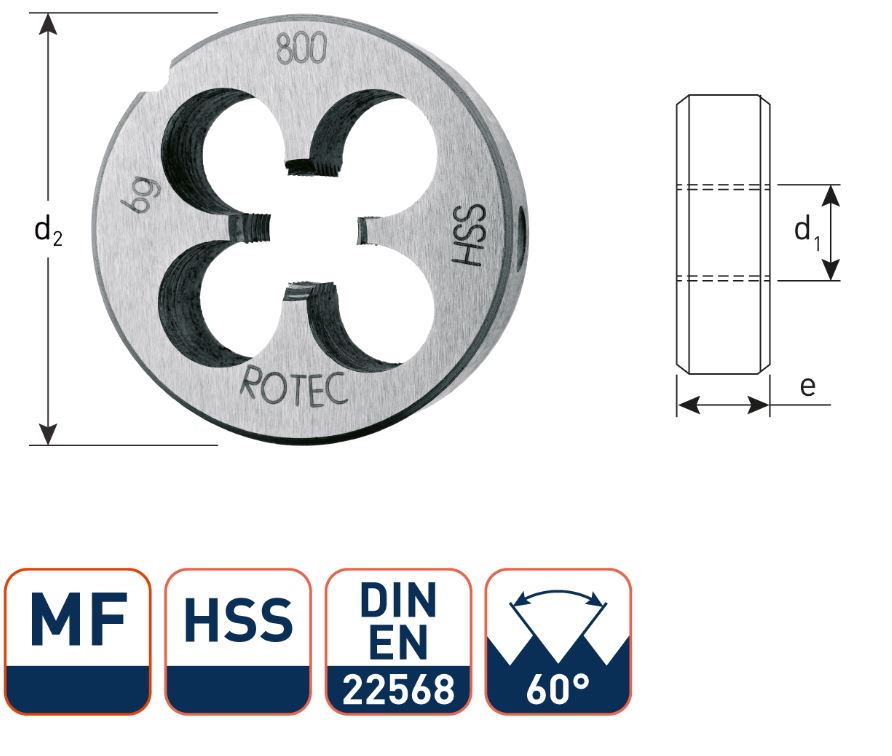- HSS round inserts, DIN - EN 22568, metric fine